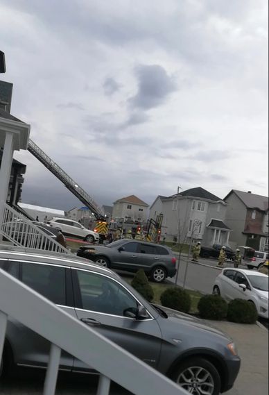 Feu de bâtiment sur la rue Éluard dans le secteur de Fabreville. Bâtiment résidentiel. Flammes apparentes. Propagation à un autre bâtiment. Le Code était 10-14, quatrième alarme. 🔔🔔🔔🔔